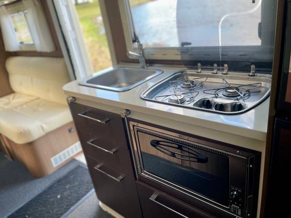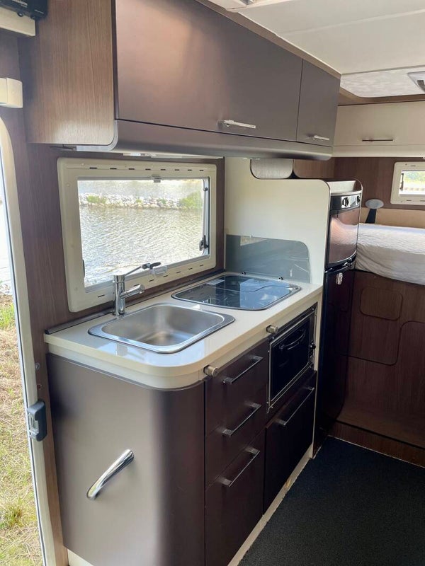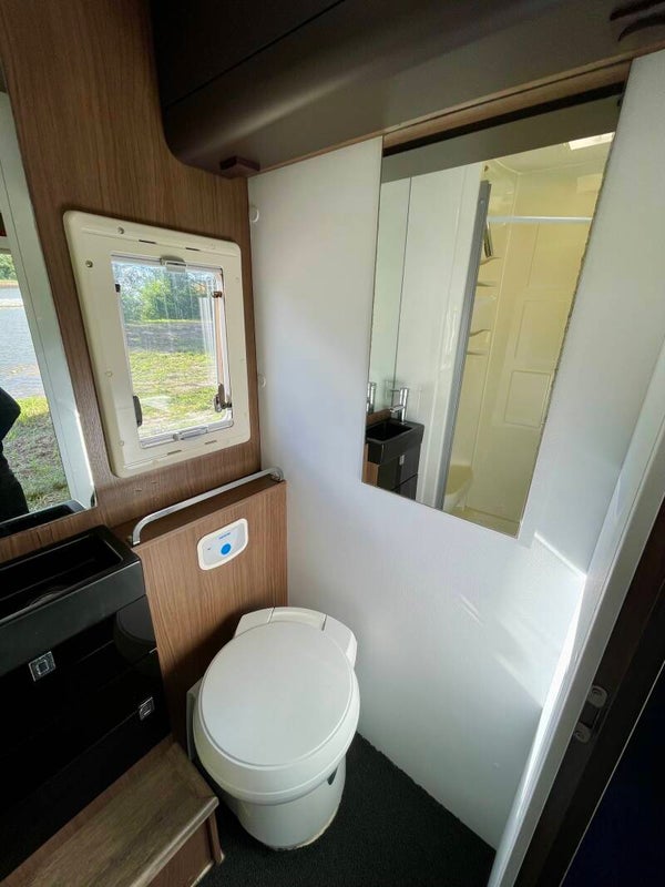 De keuken is compleet uitgerust met oven, grote koelkast en apart vriesvak. De badkamer is ruim en biedt extra comfort onderweg.