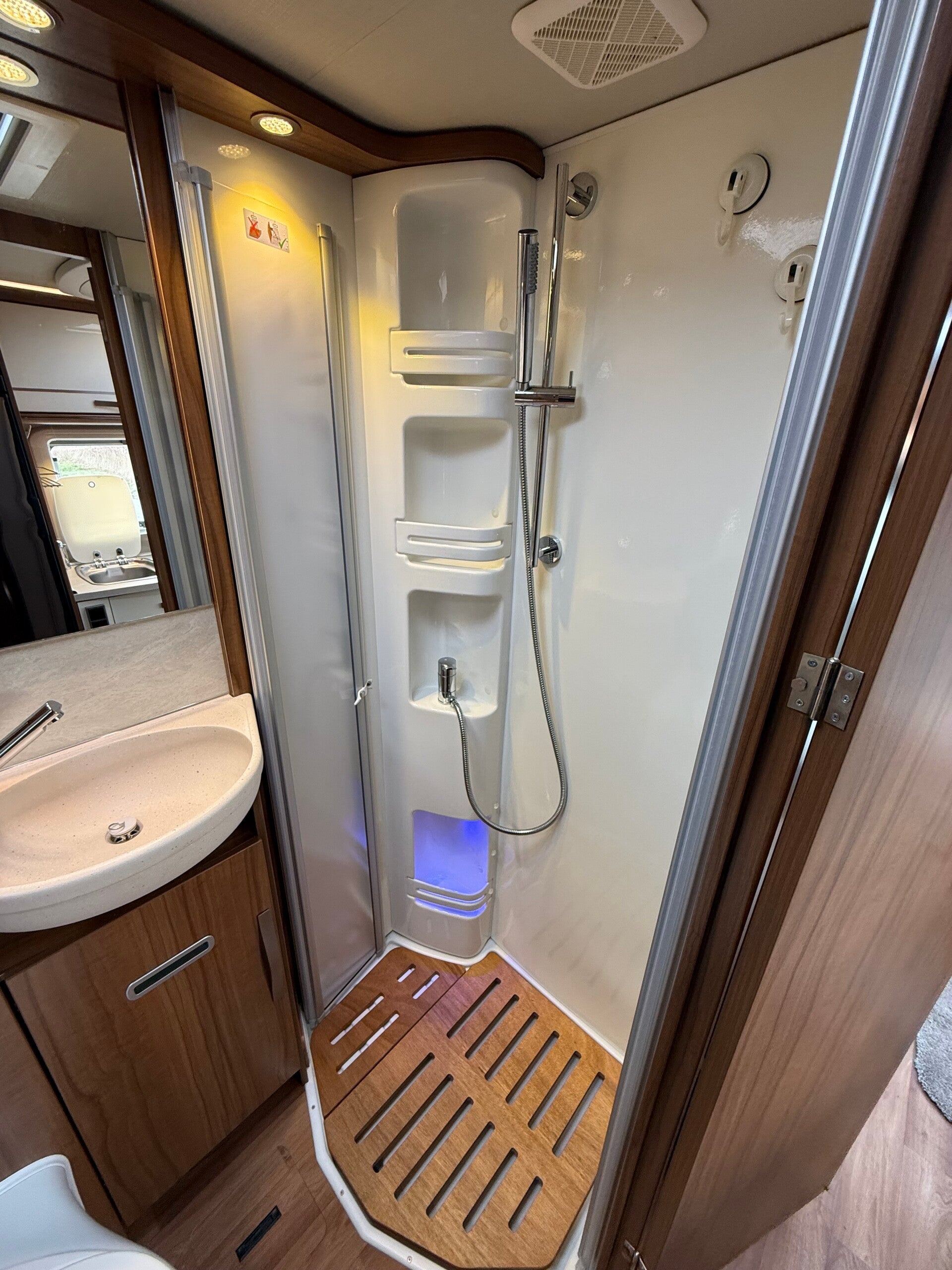 De camper is voorzien van diverse fabrieksopties, waaronder het Ambiance-pakket met sfeervolle LED-verlichting. Daarnaast is de camper uitgerust met hulpluchtvering en spoorverbreders voor extra stabiliteit en rijcomfort.