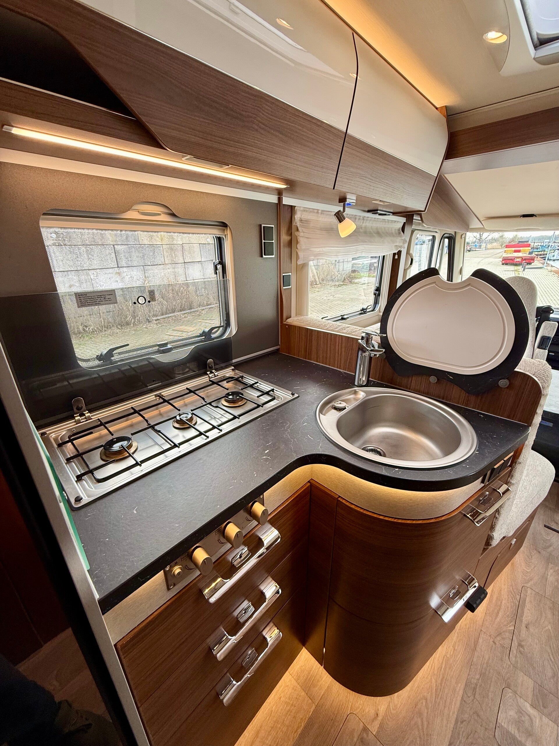 De Hymer BMC-I 600 straalt warmte en kwaliteit uit zodra u binnenstapt. De combinatie van het moderne meubeldecor, de warme houttinten en de stijlvolle bekleding zorgt voor een bijzonder sfeervolle en luxe uitstraling. Alles voelt solide, doordacht en comfortabel aan.