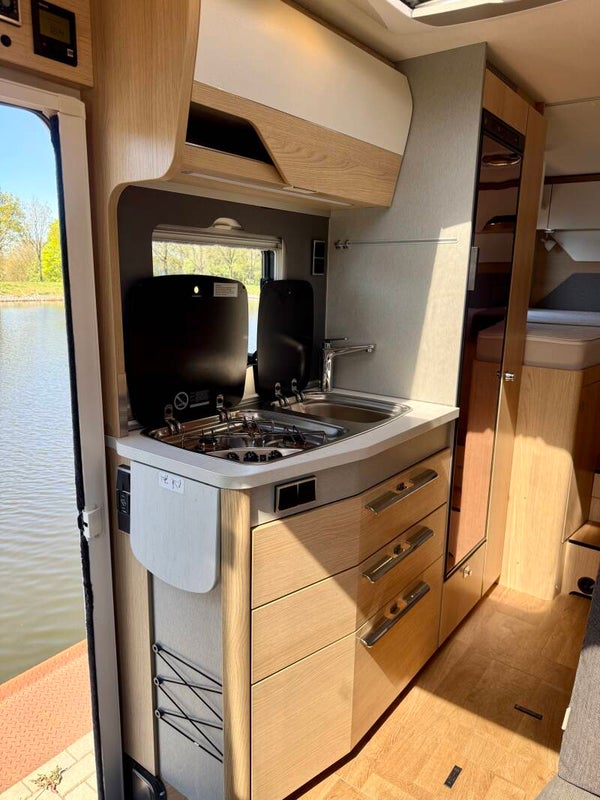 Voor vrij staan (autark) is deze camper uitstekend uitgerust met een lithium accu (100 Ah), hydraulisch levelsysteem (automatisch waterpas) en wifi-router. Binnenin zorgt de grote 32 inch TV voor extra comfort.
